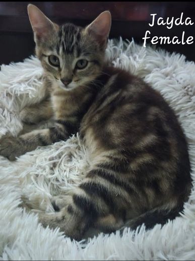 Jayda is a very loving kitty. She's been through alot in her short life and so deserves an amazing home now. She was found abandoned under a porch with her brother when they were newly born. At 12 weeks old she is vaccinated and dewormed, strong and ready for a home. If you've got a spot for a sweet kitty please reach out.