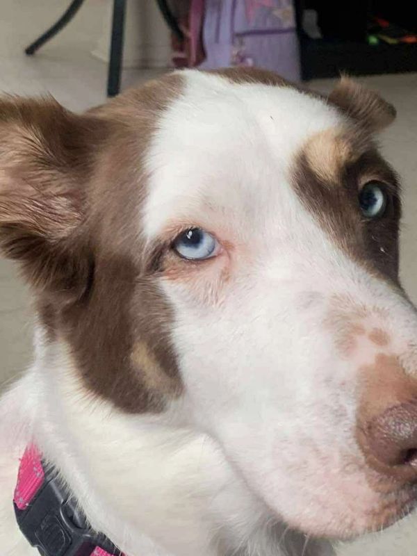 Coco is a 4 year old chocolate lab/husky who was surrendered to us by her owner due to life changes. This can be very confusing for pups, but despite this, she remains loving and sweet. She has grown up with children and gets along with all dogs. Has not yet met cats. She walks well on a leash and has great recall. Spayed and vaccinated.