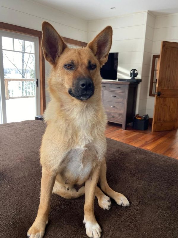 Jade is approximately 1. She's a husky mix. A petite girl at about 40 pounds and around knee height. Extremely affectionate and very happy, healthy girl. She is an owner surrender, no fault of her own. Spayed and vaccinated. She would suit a home where she can continue to enjoy long country walks and a buddy. She has not lived with cats or young children. Her recall is really good. Being fostered in Pointe au Baril.